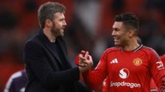 Manchester United manager Michael Carrick praises the "great" connection between Casemiro and Bruno Fernandes, after the duo combined for the opening goal in their 3-1 victory over Aston Villa.