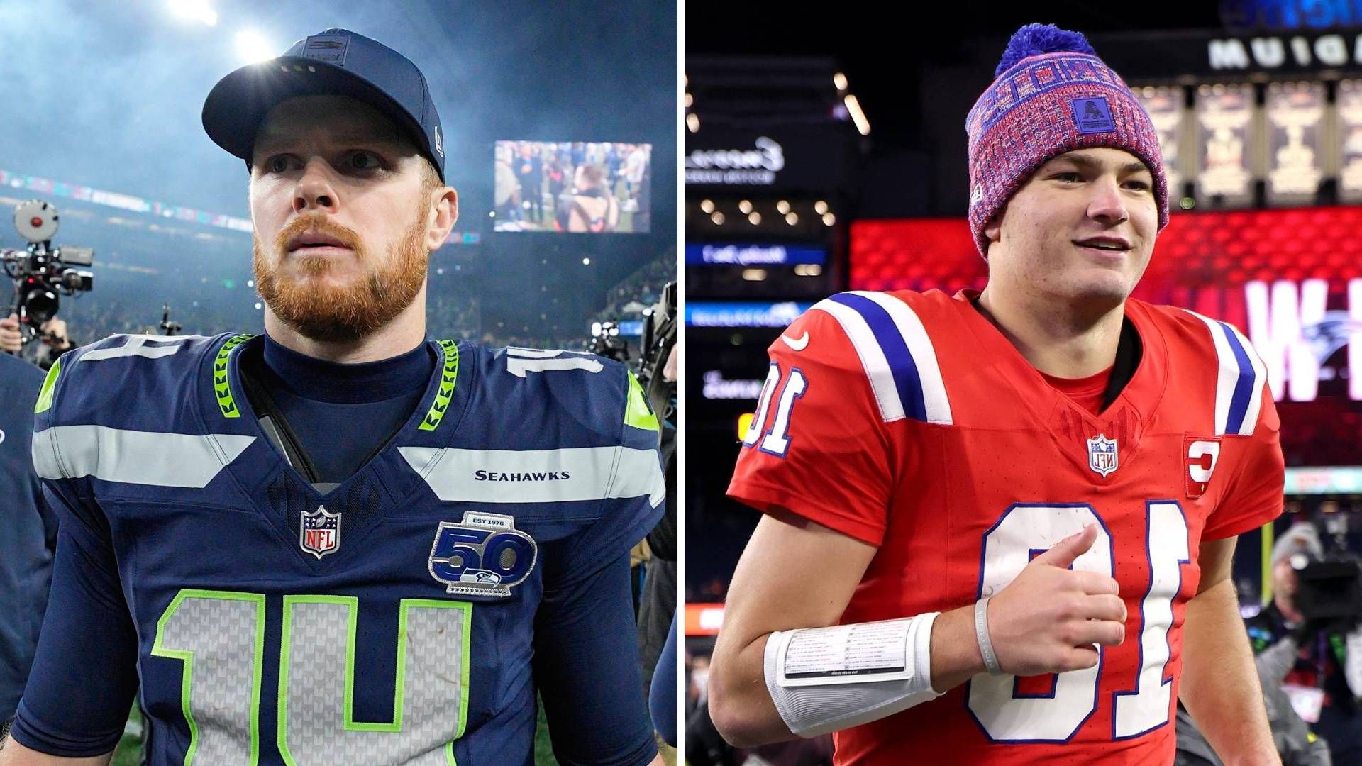 All about the New England Patriots quarterback Drake Maye and the Seattle Seahawks quarterback Sam Darnold...